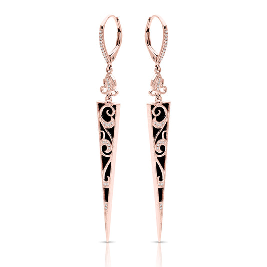 ROSE GOLD ONYX AND DIAMOND DROP EARRINGS