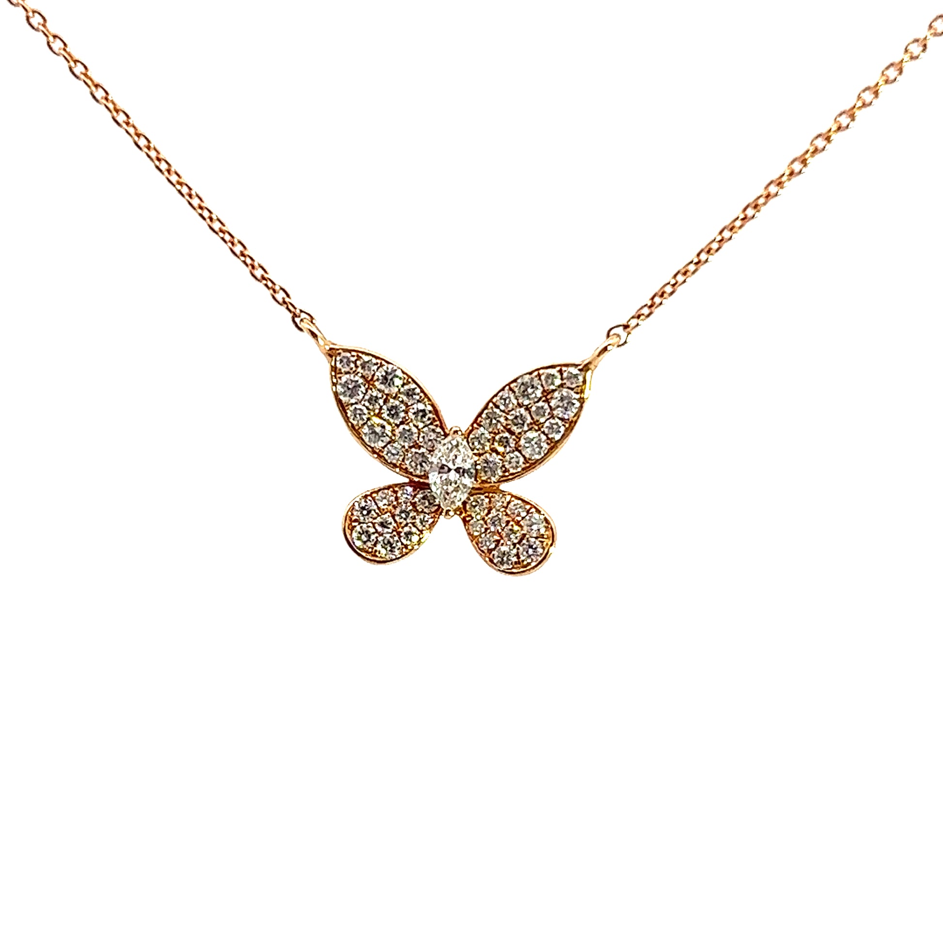 Butterfly diamond necklace set in 18k rose gold, .65ctw vs/h diamond.