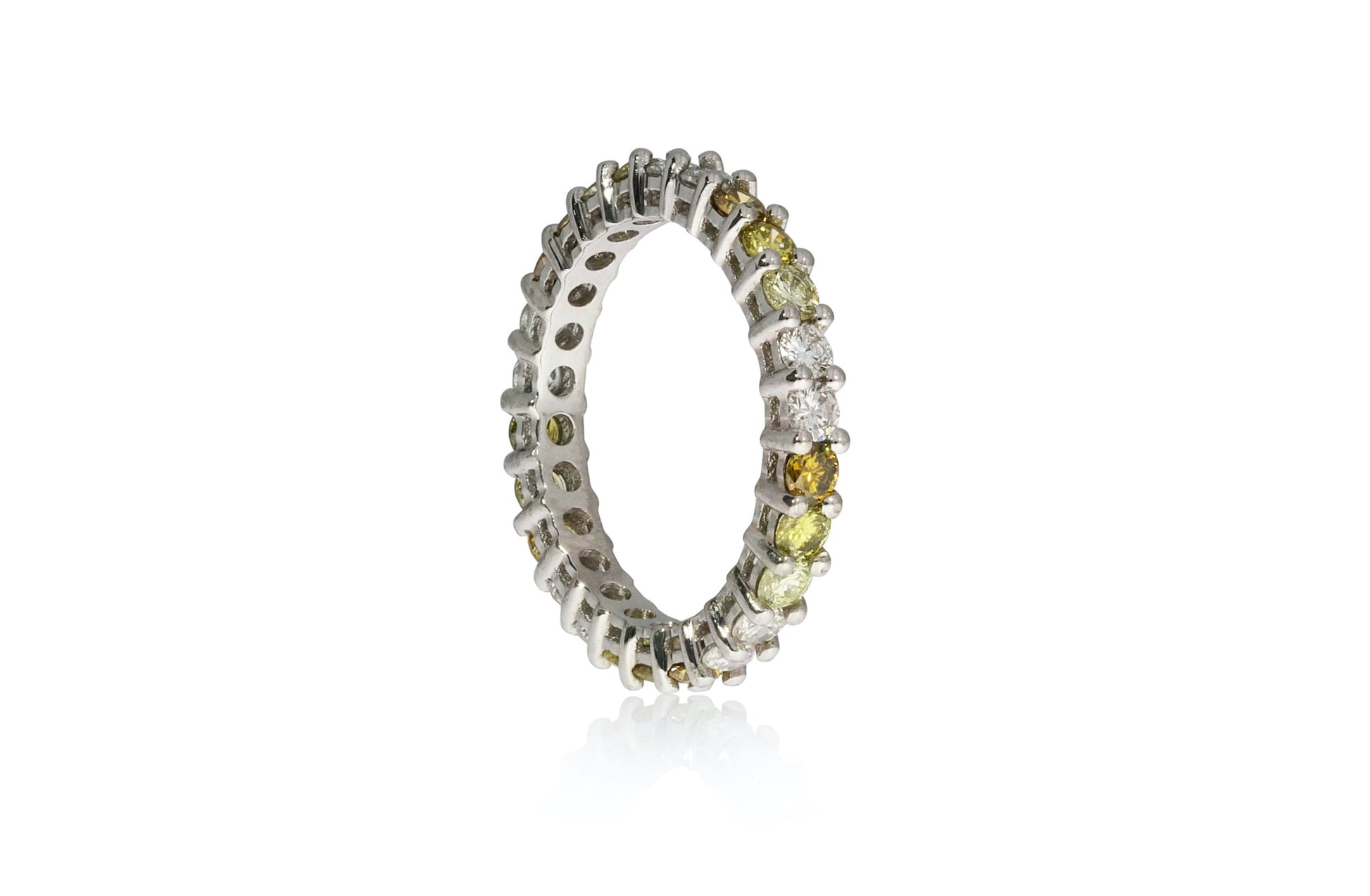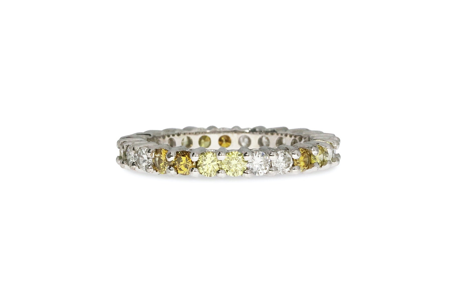 14K white gold fancy yellow eternity band 1.75 ctw vs-si fancy yellow diamond band.