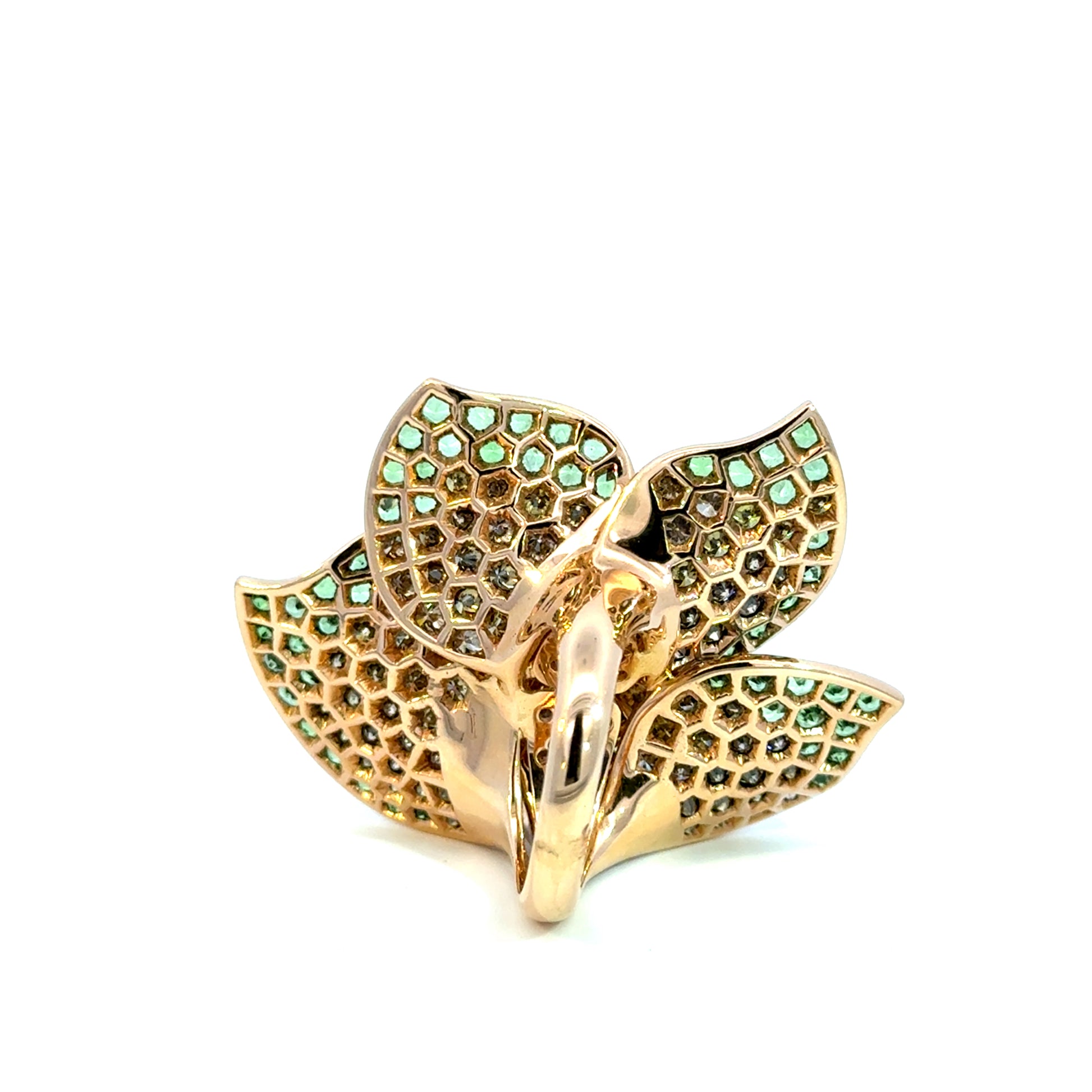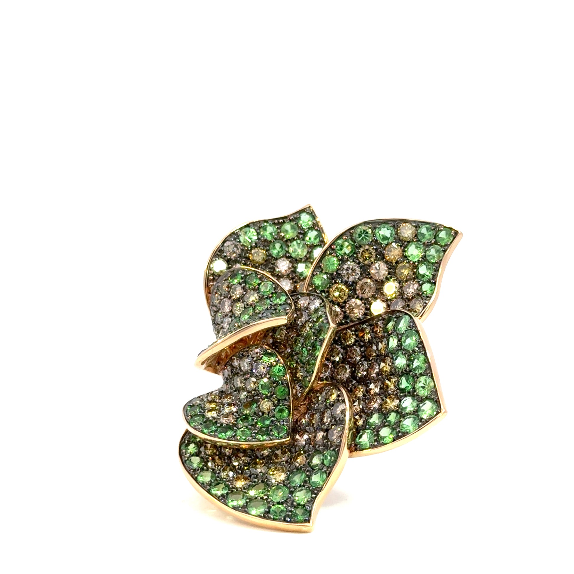 Flower Tsavorite garnet ring 15.10ctw garnet/7.24ctw top light brown diamond set in 18k rose gold.