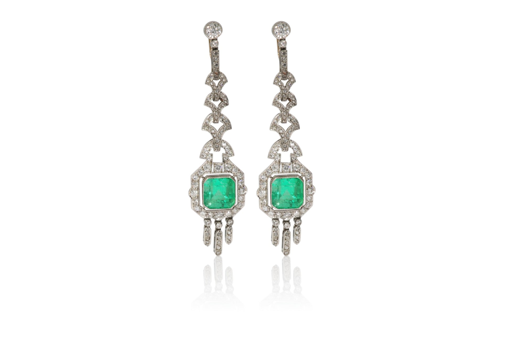Platinum 1940's earrings 7.57 ctw emerald gia