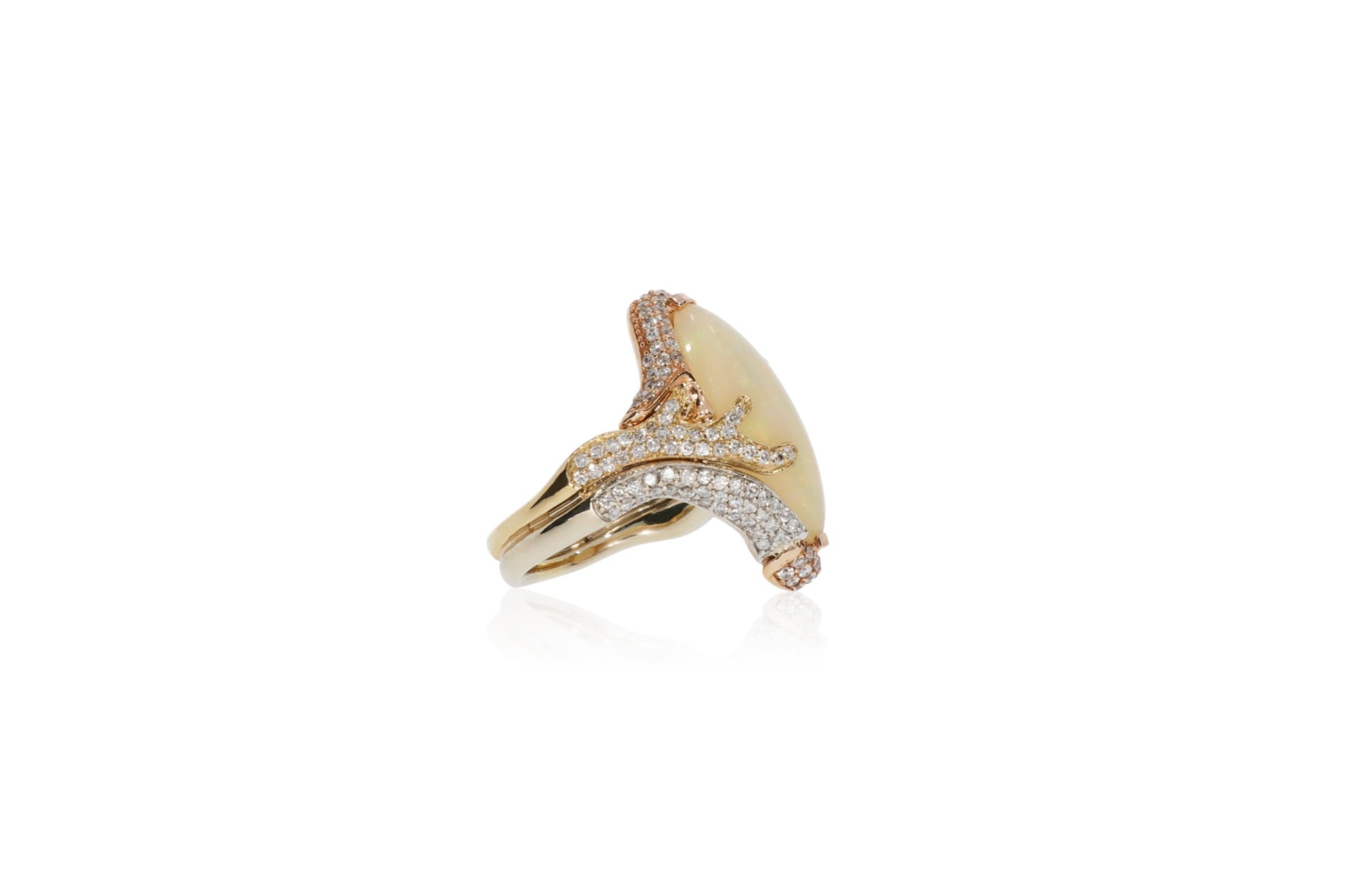 18k 3 tone opal ring 15 ctw white opal 1.50ctw vs1/h diamonds ring size 6