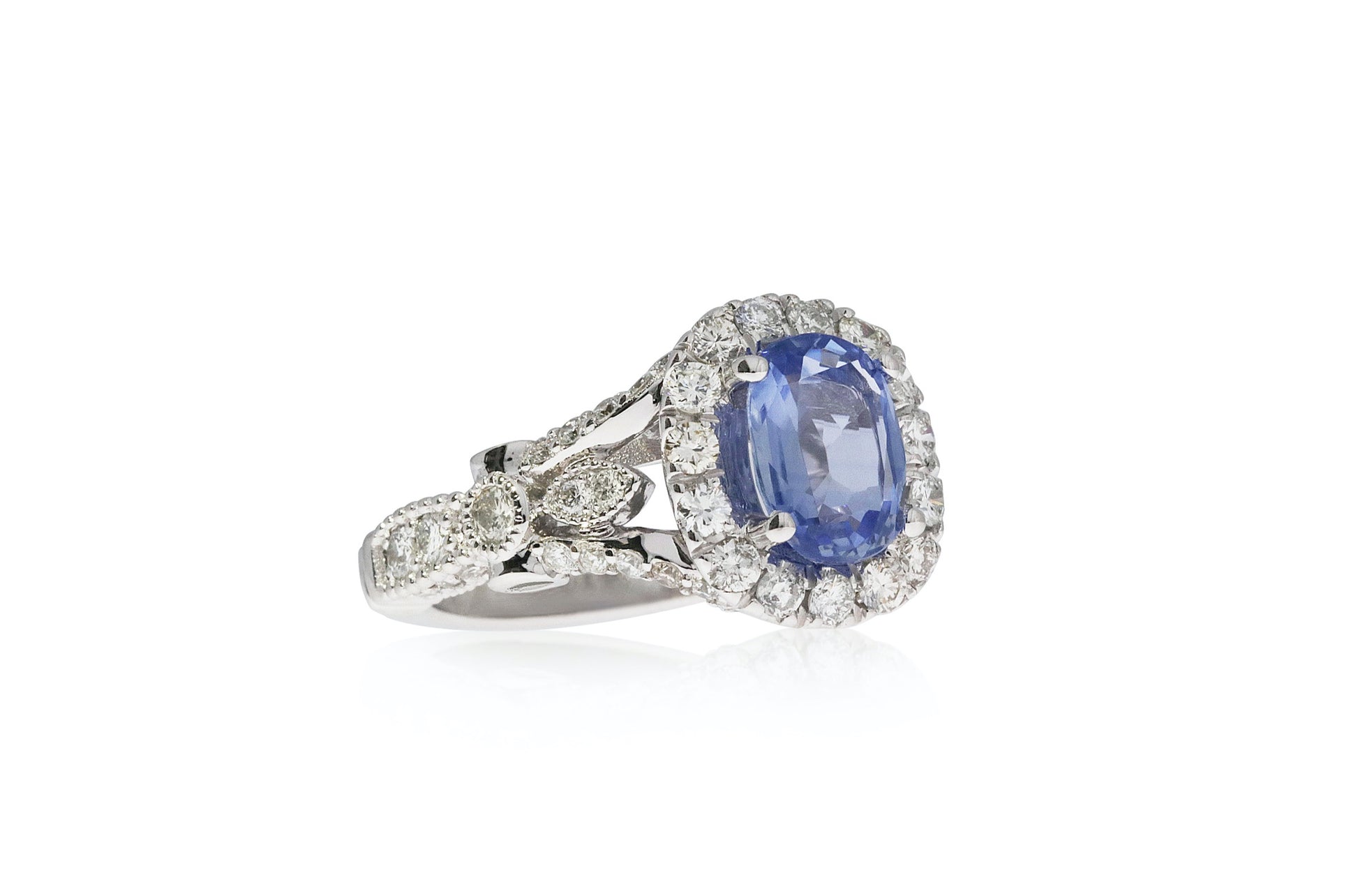 14K white gold sapphire ring 3.40 ctw oval sapphire 1.92 ctwvs/h-i diamond