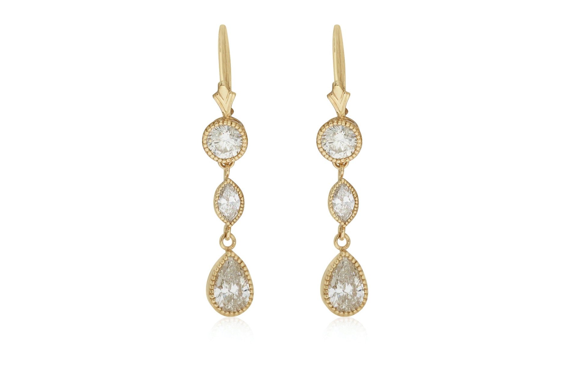 14K yellow gold diamond drop earrings 3.44 ctw si1/si2 pear, round, marquise drop earrings