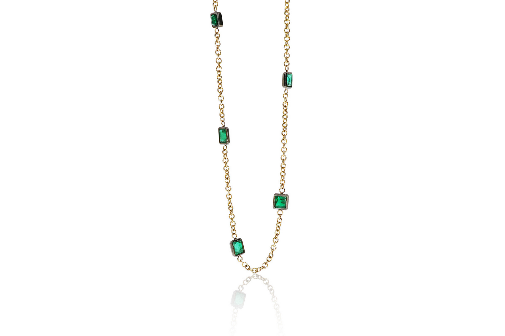 18K yellow gold emerald dby 3.95 ctw colombian emeralds .18" necklace